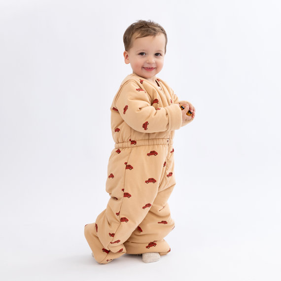 Chose the winter version with detachable armpieces Our boy loves the feeling of it We bought it a bit too big, so the legs dont fit for now, but that doesnt bother our son to run like crazy with it, making the zippers make a ticking noise on the floor... Really handy you can zip the legs apart OR together as a bag Really happy with this pirchase, although the price was a big step to decide this purchase - Lynn V. - 2023-05-31