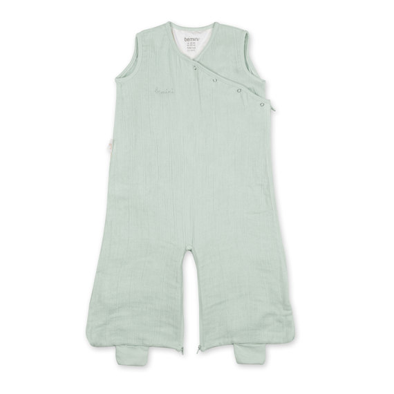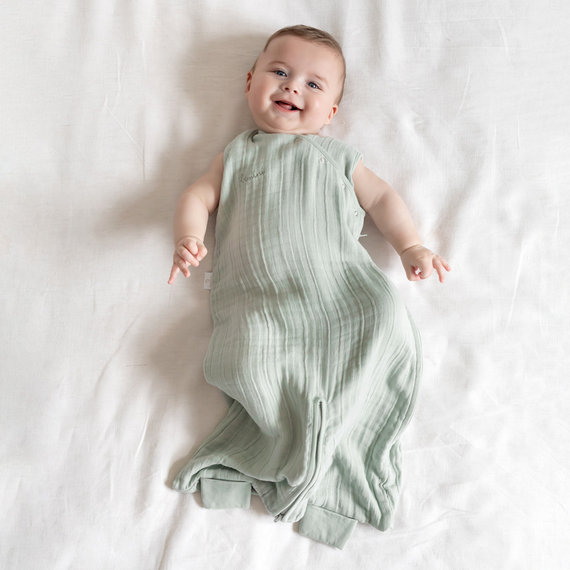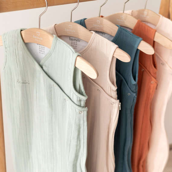 Zart wie eine Streicheleinheit schmiegt sich der Schlafsack aus Bambus- und Baumwollmusselin sanft an die empfindliche Haut des Babys.