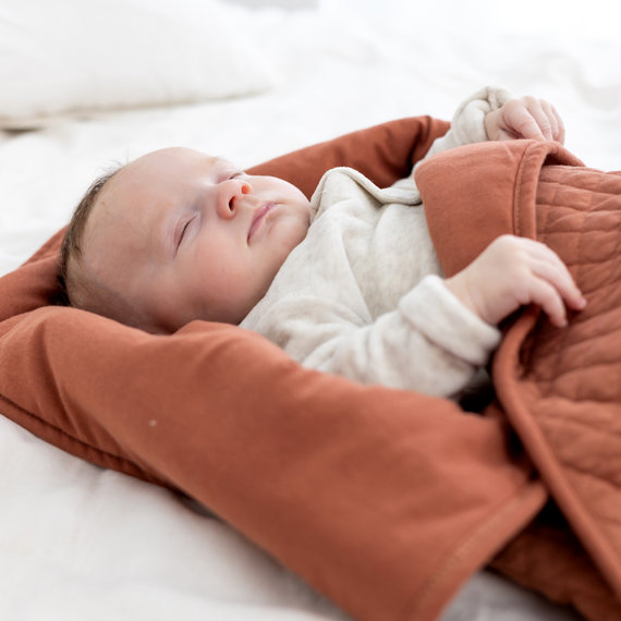 Warm und anschmiegsam, sorgt die wattierte Jerseydecke aus Baumwolle für optimalen Wärmekomfort und ist sanft zur empfindlichen Babyhaut.