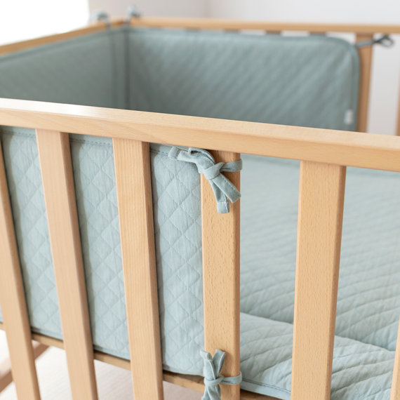 Sanft und beruhigend umhüllt der Bettumrandung das Baby und schafft ein beruhigendes Nest ohne Risiko, sich an den Stäben zu stoßen oder festzuhängen.
