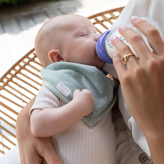 With its adjustable press-button fastener, it always fits perfectly around baby's neck. When baby drinks or cleans his teeth, this little waterproof bib limits stains on clothes and protects against cold from a damp neck. The interior waterproof coating is supple and guaranteed phthalate-free.