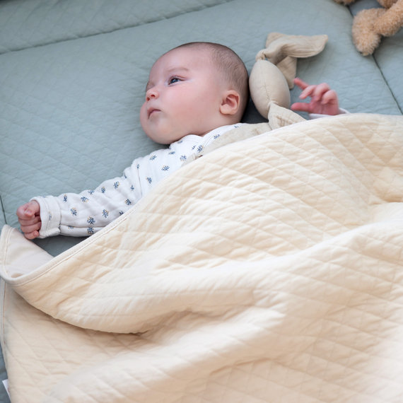 Warm and cuddly, the quilted cotton jersey blanket provides perfect thermal comfort while being gentle on baby’s delicate skin.