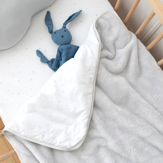 The microfibre quilted blanket lined with cotton jersey provides delicate warmth and comfort. The combed cotton jersey side is very soft against baby's delicate skin. The quilted padding makes it ever so cosy and comforting.