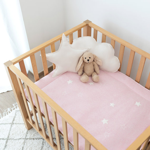 The comfortable and absorbent soft terry towelling mat is ideal for all seasons. Sprinkled with small embroidered stars, it will simply and elegantly personalise your playpen.
