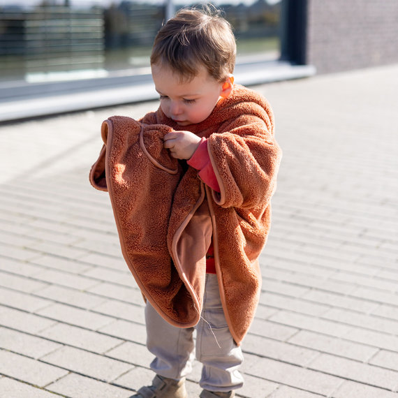 Wat een zaligheid. Draag zoontje (12 maanden) naar auto met poncho aan en in auto gebruik ik hem nu al deken. Het is ook een kei schattig zicht. Tijdens wandelingen zit hij lekker warm en valt hij in slaap zit je niet te sukkelen om een jasje uit te doen. Een van mijn beste, veelzijdige aankopen. - Inne P. - 2023-11-28
