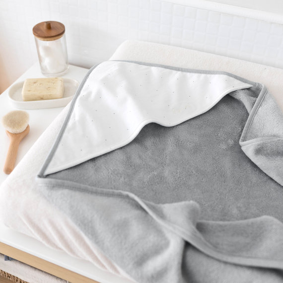 Bien absorbente, la capa de baño proporciona un cuidado suave para una higiene perfecta. Su gran tamaño permite que el bebé esté bien envuelto y seco después del baño. Naturalmente antibacteriana e hipoalergénica, la fibra de bambú es ideal para la piel frágil del bebé.