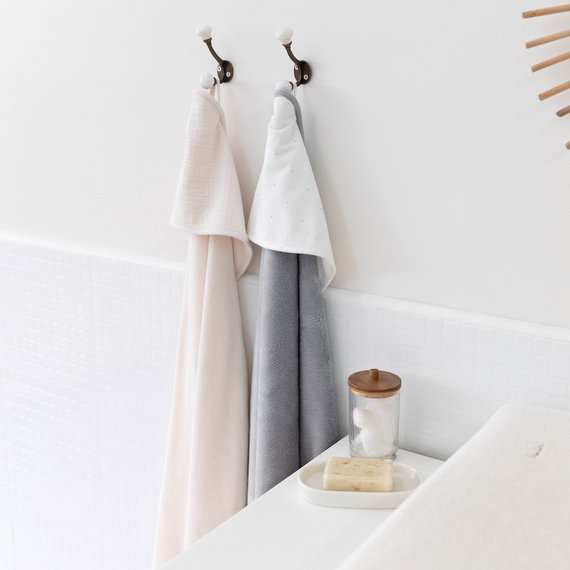 El truco para secar al bebé rápidamente es elegir un tamaño de capa lo suficientemente grande para envolverlo y secarlo, manteniéndolo caliente después del baño. Las generosas medidas de nuestros albornoces te permiten envolver bien a tu bebé y limpiar suavemente a tu bebé. Además, le servirá durante todo su crecimiento. Compuesto por una capucha para mantener la cabeza caliente y una toallita a juego, la toalla de baño es un artículo imprescindible desde el nacimiento.