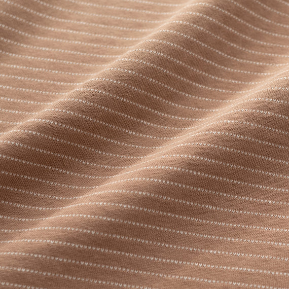 La estructura doblemente reversible, a rayas o a lunares, añade elegancia y originalidad. Lavado tras lavado, el doble jersey conserva toda su fijación y suavidad.