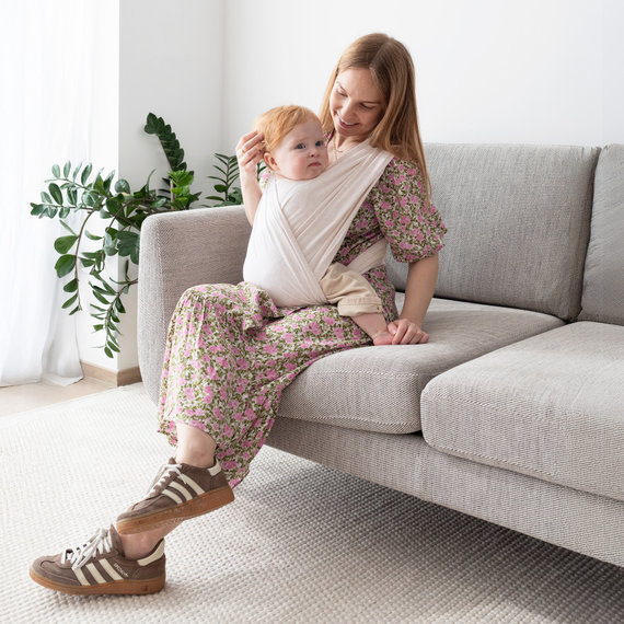 El bienestar del bebé y la libertad de movimiento del adulto reunidos en un gesto sencillo y natural.