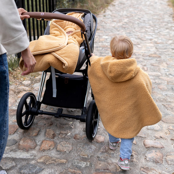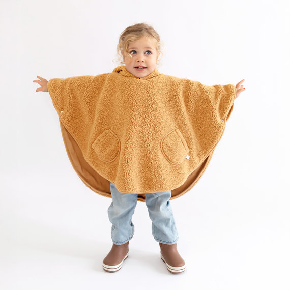 Chaud, pratique et confortable, le poncho est le manteau idéal pour tous les déplacements en voiture, en poussette, à vélo ou dans le porte-bébé.