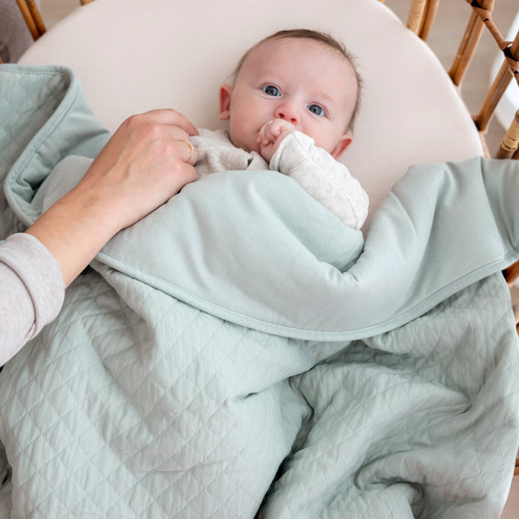 Warm en knuffelig, de gewatteerde katoenen jerseydeken biedt een ideaal warmtecomfort en blijft zacht voor de tere babyhuid.