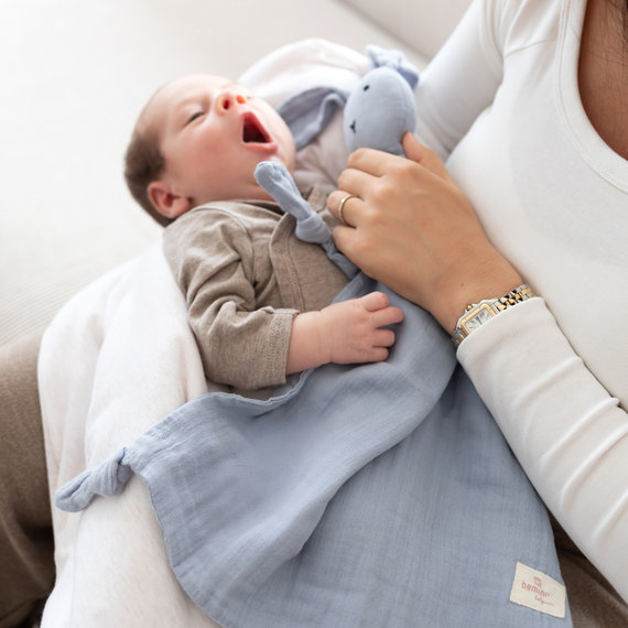 De superheld van baby’s emoties, met een eindeloze zachtheid die het gevoelige huidje respecteert. Heel praktisch: de fopspeen of bijtring blijft veilig vastgehecht, als een kostbare schat.