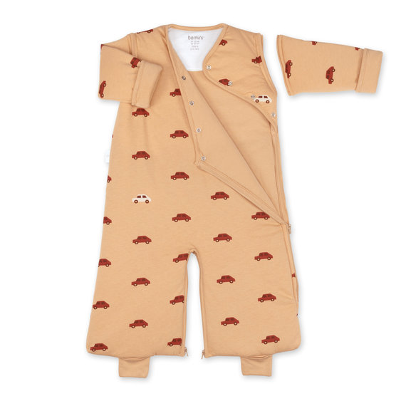 Dankzij het moduleerbare ritsysteem kan de onderkant snel aangepast worden, de benen wel of niet uit elkaar. Deze eigenschap is essentieel om de gordels door te laten en het gordelsysteem van de autostoel correct te sluiten, zo dicht mogelijk tegen het lichaam van de baby.